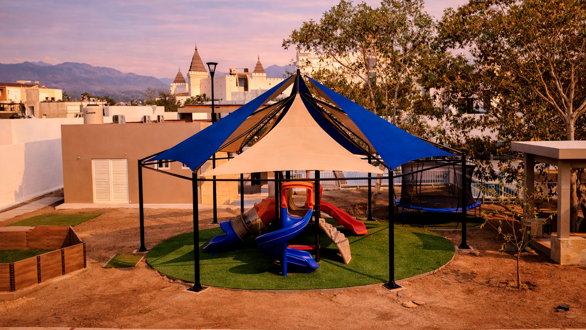 Cubiertas para playground en Vallarta, tensoestructuras recreativas.